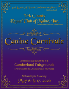 On May 16 & 17, 2026, the York County Kennel Club of Maine is proud to bring this tradition to New England. The overall popularity of these festivals is a testimonial to the universal love for dogs, the sports they excel in, and the important role they play in our lives!